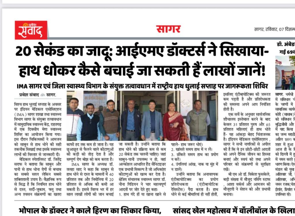 इंडियन मेडिकल एसोसिएशन , सागर ने सभी नागरिकों से अपील की है कि वे इन छोटी-छोटी आदतों को अपने दैनिक जीवन का हिस्सा बनाएं और स्वयं को तथा अपने परिवार को संक्रमणों से सुरक्षित रखें।